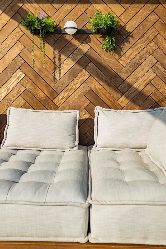We can design and construct various patterns to best match the surroundings (and your personal taste). This particular pattern is called Herringbone.